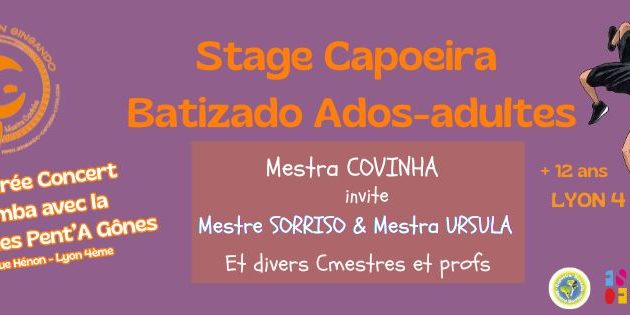 Cours et rodas capoeira et maculelê jusqu’à environ 17h00 puis Batizado pour finaliser la journée